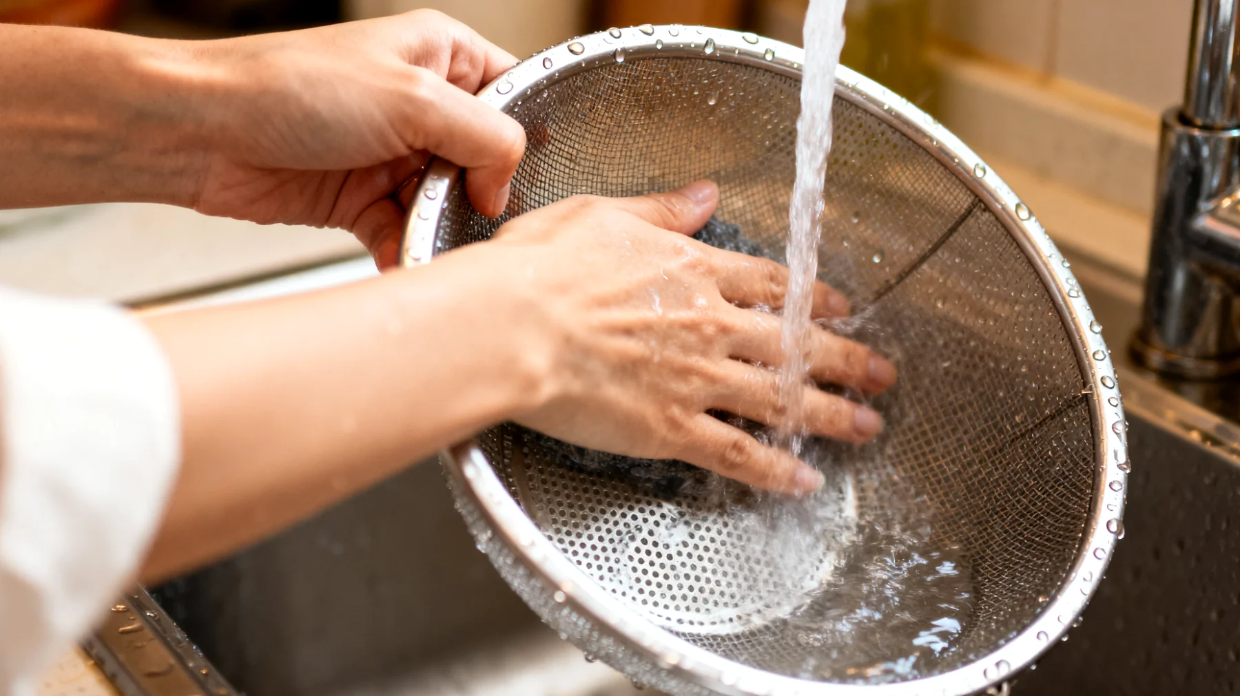 Il modo più efficace per pulire un colino intasato sfrutta un principio semplice ma raramente applicato correttamente: la combinazione tra temperatura elevata e direzione inversa del flusso d’acqua. Invece di cercare di pulirlo dall’esterno — spingendo involontariamente i residui più a fondo nella maglia — il colino va girato e lavato dalla parte opposta al filtraggio, sotto un getto d’acqua calda e potente.